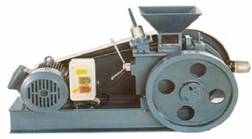 Two jaws of manganese steel are provided in the jaw crusher. The movable jaw produces two bowls for every revolution, thus reducing over sizing to a minimum. A combination of forward and downward strokes with a rocking action exerts pressure on the coarser materials, yet permits the finished materials to pass through the jaws. A hopper is provided at the top for feeding materials. The smooth jaws ensure a uniform products and easy cleaning is possible. |